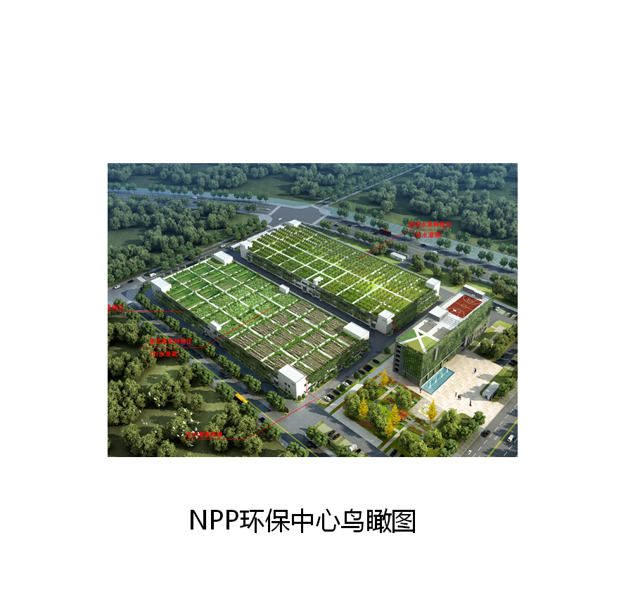 外墙用植物进行装饰。远远望去,不是工厂,给人感觉是一个绿色的世界,从第一感觉上摒弃了传统工业的冷冰冰、脏兮兮的印象。NPP技术使整个NPP环保中心的工业运作没有污染、资源循环利用。